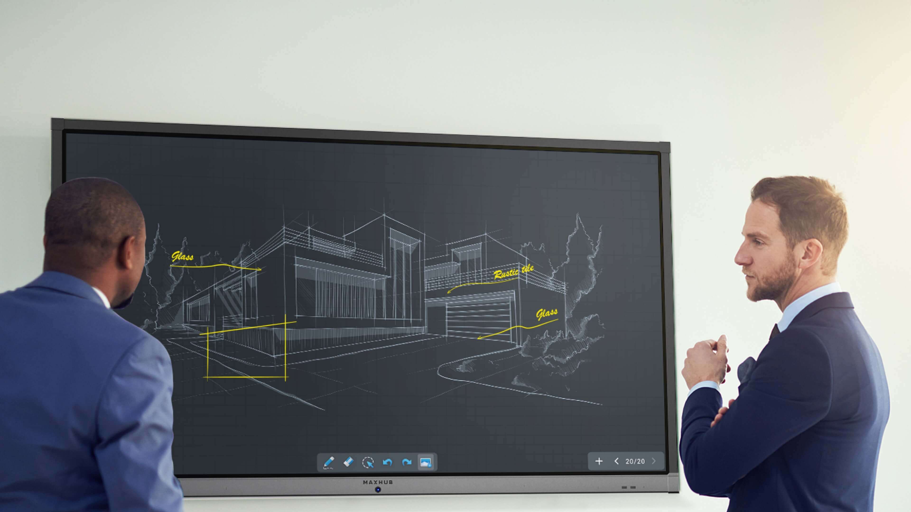 獨特的電容 + 電磁雙觸控技術,讓你在一塊純美的屏幕上享受暢快精細的書寫,同時融入圖表輔助等更智能的人性化設計,滿足會議中高效的書寫需求。