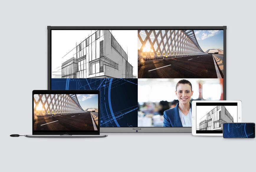 MAXHUB 打破單一功能的產品邏輯,集高質量顯示、觸摸書寫、無線傳屏等功能于一體,兼容多種遠程會議軟