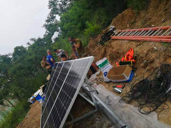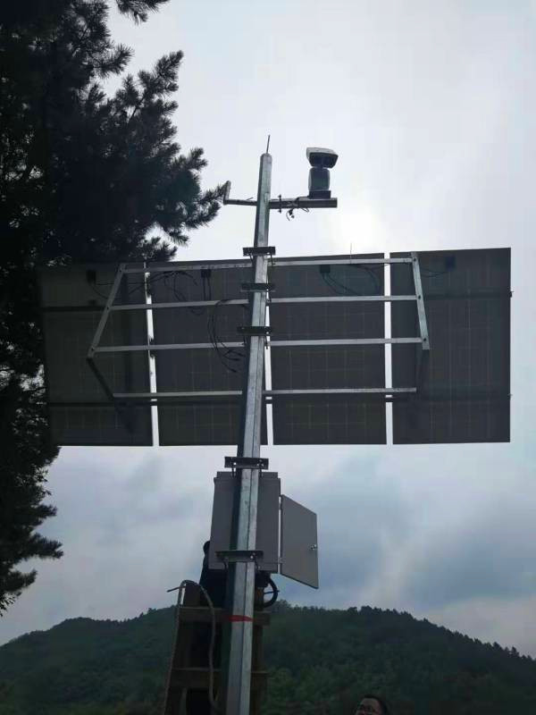 前期的方案確定了十幾個施工點,工程師帶領工人逐個施工安裝。先打地基,然后組裝安放監控立桿、安置監控攝像頭、安置太陽能供電板等,一步步的施工有條不紊。在整體安裝完成后,還要對每個攝像頭進行測試調試,確定都能正常工作,并且調整監控角度,盡量達成監控無死角。到此,施工完畢。