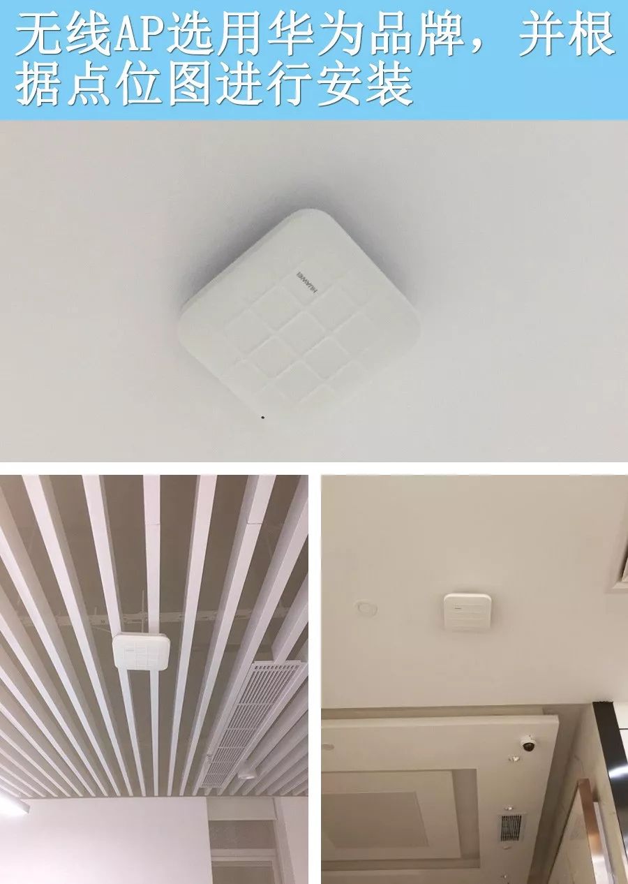 正通校區的無線設備采用國內優質品牌:華為!工程師實地勘測辦公環境,精準確認每個無線AP點位后,上架無線AP并測試調試!