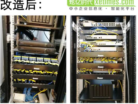 布線完畢后就是割接工作,工程師高效嫻熟的將舊網絡遷移到新設備上,整個工程都使用的是行業主流戰略合作品牌華為的產品,割接完畢后將設備放置到機柜中進行整理,與改造前的機房相比線路更為清晰明了!