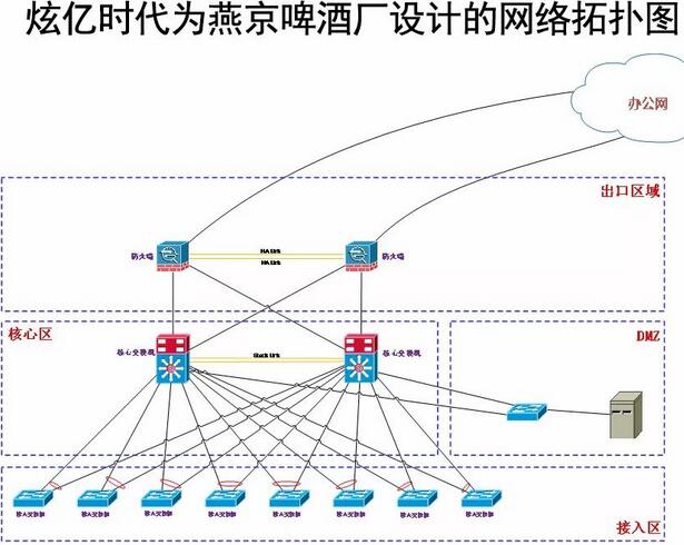 此次燕京啤酒廠房網絡建設主要針對企業未來5年發展規劃來設計網絡架構!根據企業業務特性,使業務平滑升級部署,采用三層網絡架構,冗余部署的方式、有效保障有線和無線使用效果!