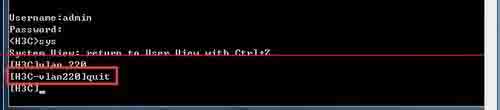 4、VLAN視圖:在系統視圖下輸入"vlan 220" 就可以進入VLAN視圖,主要完成對VLAN的配置,如圖所示: