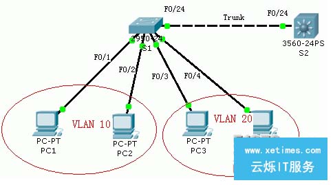 S1(config-if-range)#switchport access vlan 20 //把F0/3到F0/4接口劃入VLAN 20