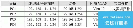 7、創(chuàng)建VLAN10、VLAN20后分別進(jìn)入VLAN10和VLAN20的三層接口配置IP地址。