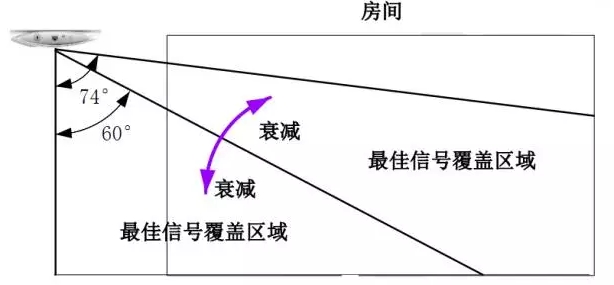 吸頂AP 使用的是定向天線,其信號發射方向如圖1-3 所示,實際覆蓋過程中,需要根據圖中的角度來確認AP 的信號是否能夠覆蓋到需要的區域