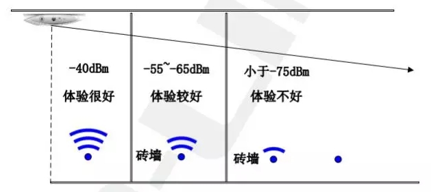 墻體對無線信號的衰減會相當大,不同墻體對無線信號的衰減會不一樣,在施工過程中,盡量保證AP 與無線覆蓋區域之前的衰減小于20dB。