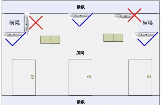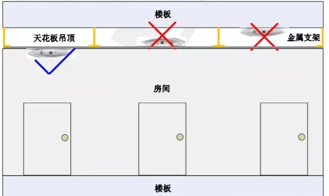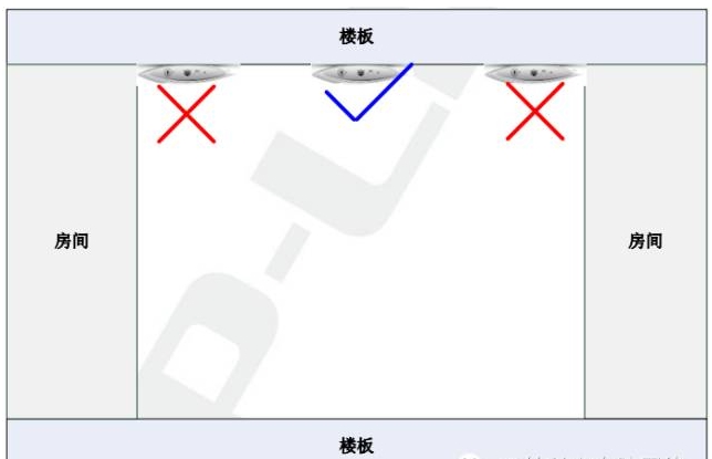 AP 在安裝的時候,盡量選擇天花上沒有遮擋的區域,與需要覆蓋的房間的墻體保持一定距離或居中的位置,安裝位置如下圖所示