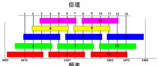 IEEE802.11n 之后的技術在信道的選擇上可以選擇多個信道,使用 40MHz 或者更高的頻段帶寬傳輸數據局,但在大規模無線組網中,如果AP 與AP 之間信道沖突,很容易造成無線使用體驗差,所以在選擇頻段帶寬上,我們盡量選擇20MHz,有效減少信道沖突。