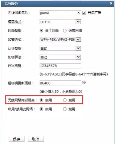 在無線網絡中,如果廣播包過多,會對無線網絡質量造成比較大的影響。所以如果沒有特殊需求的情況下,建議將AP 下面的無線客戶端進行隔離,如圖