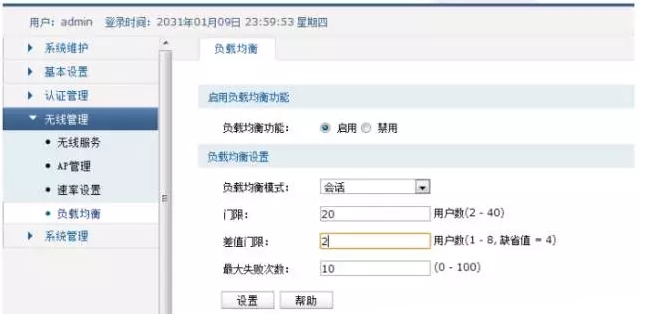 基于接入用戶數的負載均衡,當AP 間的用戶數量超過設定的閾值時,AC(僅AC1000支持) 能夠動態調整用戶在不同AP 間的均勻分布,防止個別AP 過載。