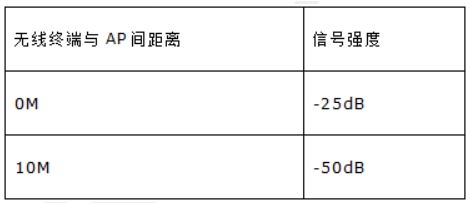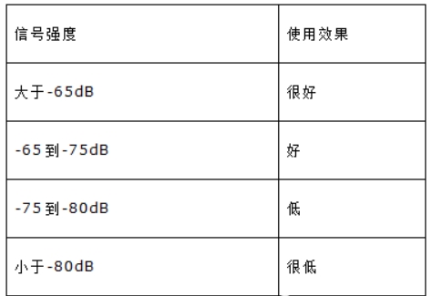 工程實施完畢后,客戶可使用手機APP 軟件“WiFi 分析儀”或筆記本無線信號測試軟件等常用測試軟件測試覆蓋范圍內各點位信號強度,附表為參考數值: