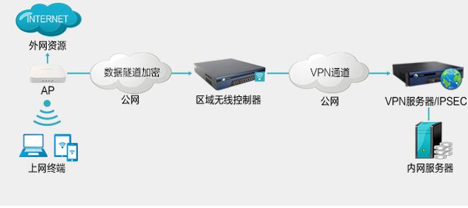 一臺(tái)無(wú)線AC管理多臺(tái)無(wú)線AP的架構(gòu),管理起來(lái)時(shí)方便,可是單一的網(wǎng)關(guān)出口數(shù)據(jù)轉(zhuǎn)發(fā)瓶頸也很明顯;