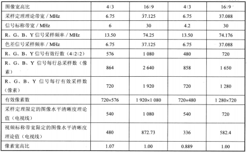視頻信號(hào)的部分參數(shù)