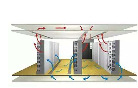 機房機密空調氣流組織為下送風上回風方式,通過金屬微孔地板彌散式送風方式將冷空氣送到機柜的前部。兩排機柜背對背的擺放方式,使機柜間形成熱通道,提高了空調的制冷效果,節省了能源。