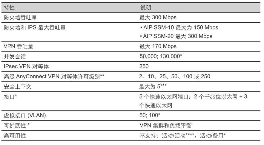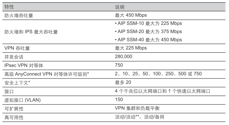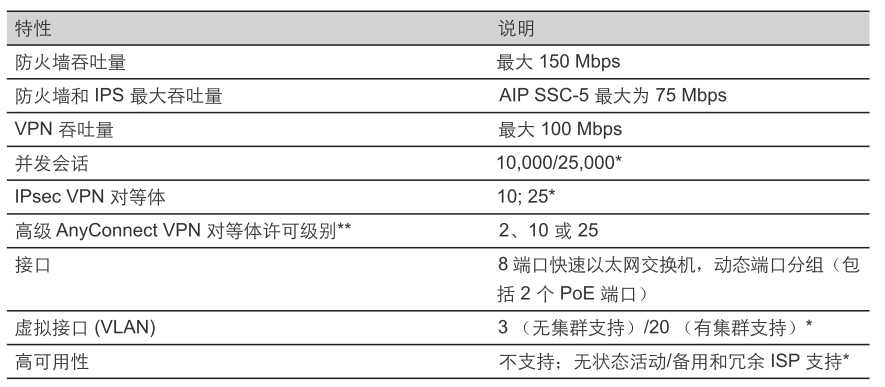 CISCO ASA5525-K8集成多業務千兆硬件VPN防火墻圖片參數信息