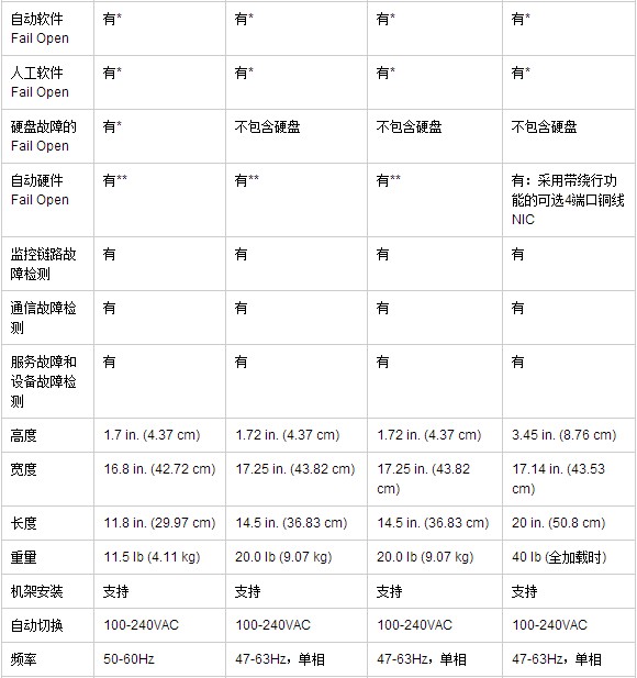 表1提供了Cisco IPS 4200系列傳感器的產品規格 炫億時代